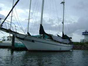 i will come there after i have some necessary repairs done– she isnt shiny at all, and some pieces were removed prior to last owner, but she is a goood bird and sails nicely and handles heavy weather proudly. gooood shiplet!!